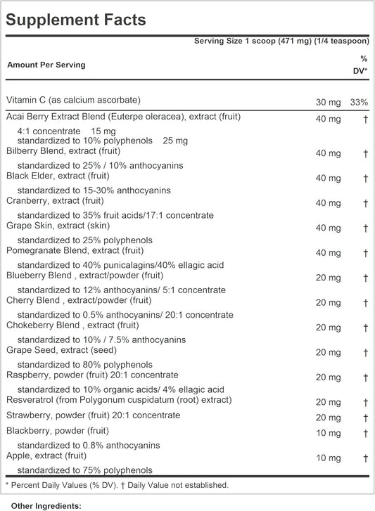 Fruit Full Anti-Oxidant Extracts Powder - 600 Servings of 14 Natural Fruit and Berry Extracts incl. Bilberry, Cranberry, Grape Seed, Pomegranate & Resveratrol