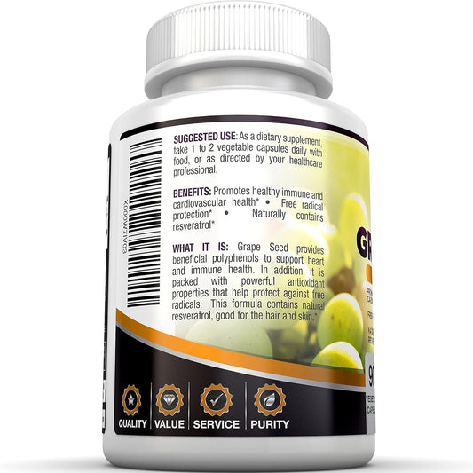 Grapeseed Extract 400mg - High Strength Antioxidant for Immune Support, Heart Health, Brain Function, and Skin - 90 Veg Caps