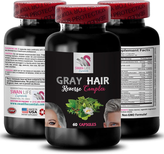 Anti Gray Hair Complex Supplement for Gray Hair Support - 180 Capsules - Promotes Hair Tone, Color Preservation, and Lustrous Shine - Gray Tone Balance and Color Brilliance Renewal - Hair Color Support Formula
