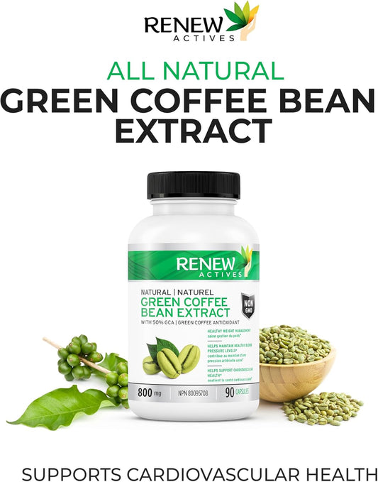 High Potency Green Coffee Bean Extract - Antioxidant Rich Formula with 800mg and 50% Chlorogenic Acid - 90 Vegan Capsules for Maximum Benefits