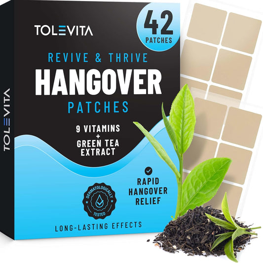 TOLEVITA Hangover Patches for After-Party Recovery | 42 Pcs of Vitamin-Infused Support for Natural Energy Boost & Hydration | Pre-Drinking Hangover Patch for a Better Morning