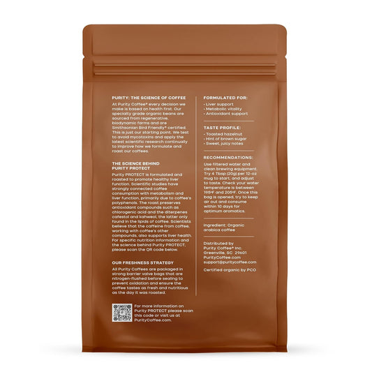 USDA Organic Liver Vitality Ground Coffee - Purity Coffee PROTECT Light-Medium Roast 12oz - Antioxidant, Mold, Mycotoxin, and Pesticide Tested