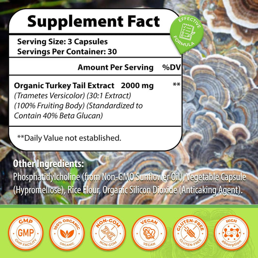 2000MG Turkey Tail Mushroom Capsules for Digestive Health & Immune Support - High Absorption Supplement for Gut Microbiome, Energy & Brain Health - 3 Pack