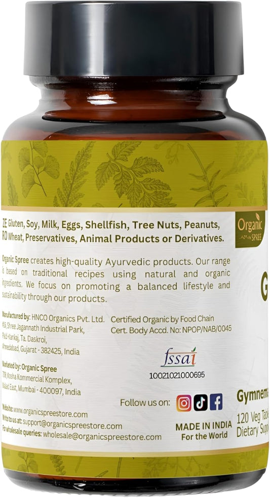 USDA Certified Organic Gymnema Sylvestre Tablets - Vegan Natural Gymnema Spree Supplement - 120 Count