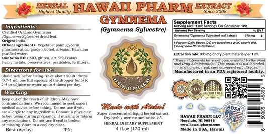 Organic HawaiiPharm Gymnema Sylvestre Liquid Extract - 4 oz - Herbal Dietary Supplement for Blood Sugar Support and Weight Management