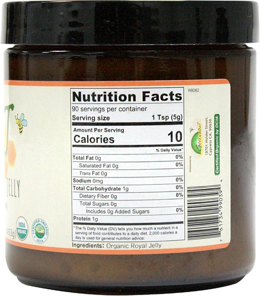 Certified Organic Greenbow Fresh Royal Jelly - Non-GMO, Halal, Gluten-Free - Pure and Nutrient-Rich Superfood - 453g
