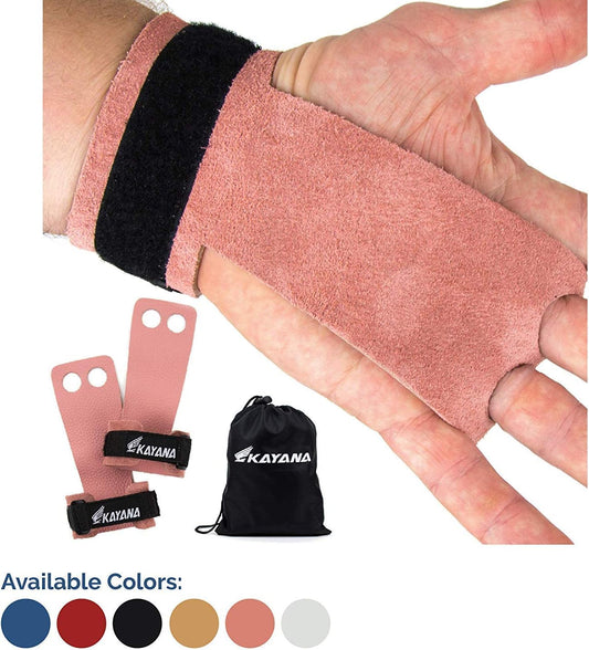 KAYANA Leather Gymnastics Hand Grips - 2 Hole Design for Palm Protection and Wrist Support in Cross Training, Weightlifting, and More