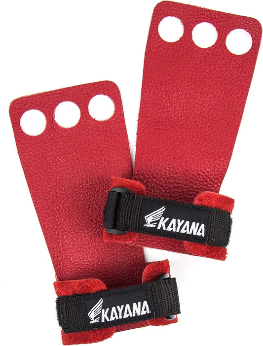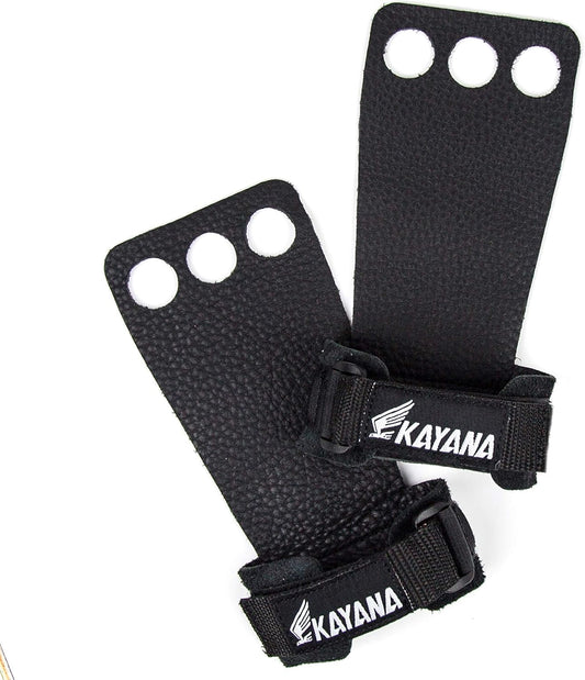 KAYANA Leather Gymnastics Hand Grips - 3 Hole Design for Palm Protection and Wrist Support in Cross Training, Weightlifting, Pull ups, and More