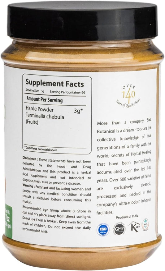 Haritaki Powder 200g - Terminalia Chebula for Natural Bowel Cleansing - Ayurvedic Herbal Supplement - Gluten Free, Non-GMO, Vegan - 100% Pure - Bixa Botanical
