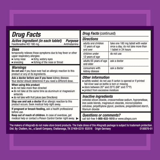 Allegra 24 Hour Allergy Relief Tablets - 180 mg - 45 Count