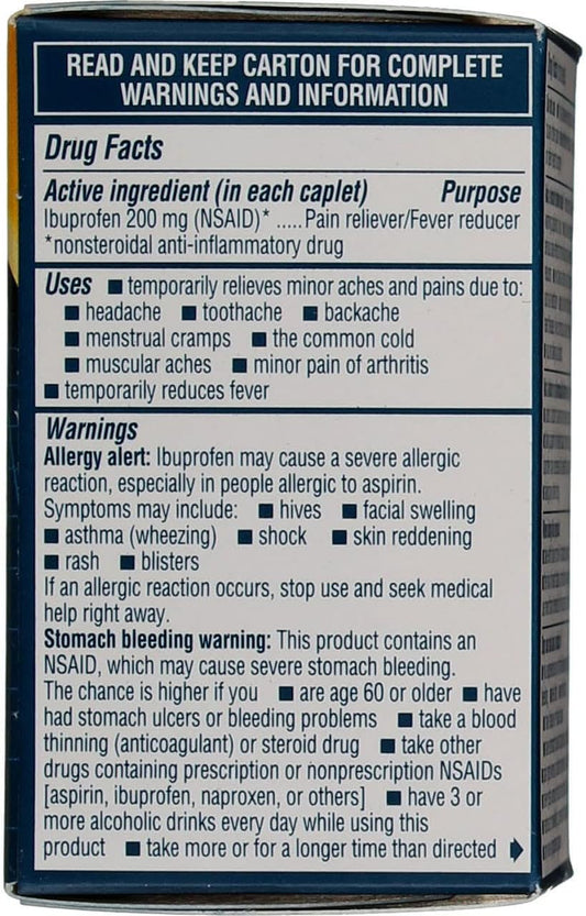 Advil 200mg Caplets - Pack of 100 Tablets for Pain Relief and Fever Reduction
