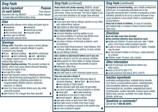 Advil Coated Tablets: Pain Reliever & Fever Reducer - Ibuprofen 200mg - Fast-Acting Relief for Aches and Fevers