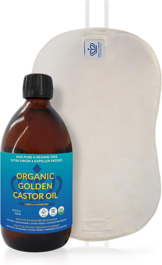 Organic Cotton Flannel Liver Kit with Reusable Castor Oil Pack - Naturopathic Doctor Designed - Includes 16.9 oz Castor Oil - Soft Straps for Comfort Fit