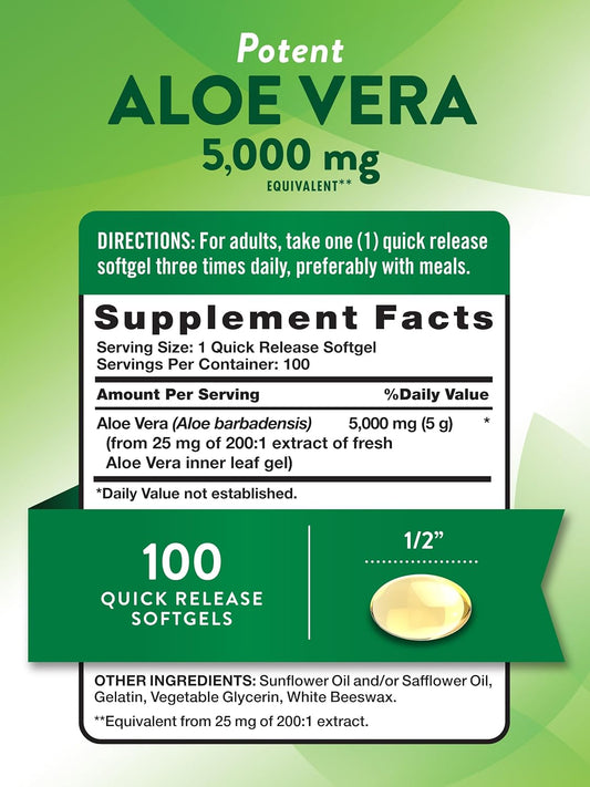 Aloe Vera Softgels - 5000mg, 100 Count | Non-GMO & Gluten Free Supplement by Nature's Truth