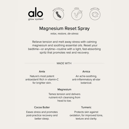 Alo Yoga Magnesium Reset Spray + Mini - Calming Blend with Soothing Magnesium, Valerian, Arnica - 3.2 oz & 0.7 oz