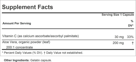 Aloe Vera 200:1 Ultra-Concentrate Capsules - Digestive Support, No Additives, Easy to Swallow