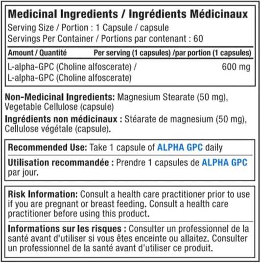 Alora Naturals Alpha GPC Supplement - 60 Vegetarian Capsules, 600mg per Capsule