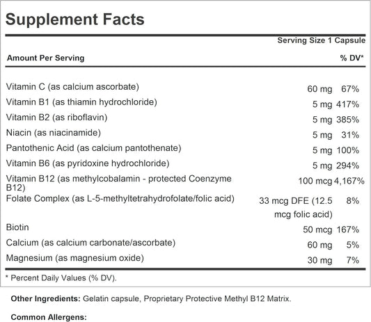360 Easy-to-Swallow Methylcobalamin Vitamin B12 Capsules for Energy and Stress Support with B-Complex