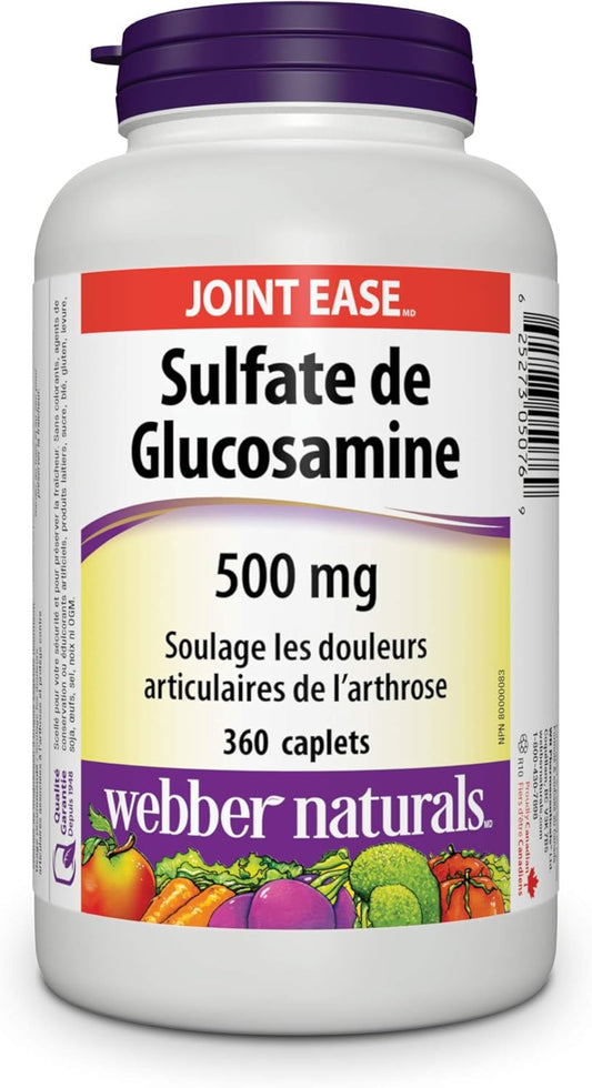 360 Count of Webber Naturals Glucosamine Sulfate Super Size Caplets, 500mg - Joint Health Support Supplement