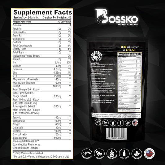 3200 MG Pure Himalayan Shilajit Gummies with Probiotics & Magnesium for Men & Women - Vegan Non-GMO - 90 Count