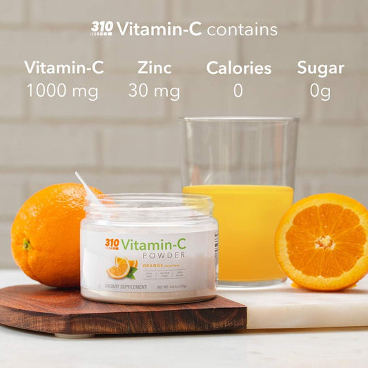 310 Nutrition Vitamin C Powder 4.8 oz - 1000mg Ascorbic Acid Immune Support - Non GMO, Gluten Free, Vegan - No Sodium, Orange Flavored VIT C