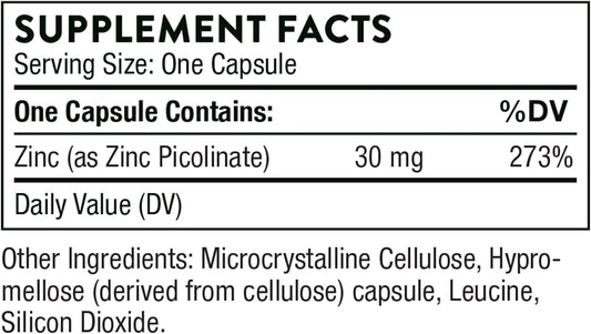 30 mg Thorne Zinc Picolinate Capsules - High-Absorption Supplement for Immune Support and Growth - 180 Count