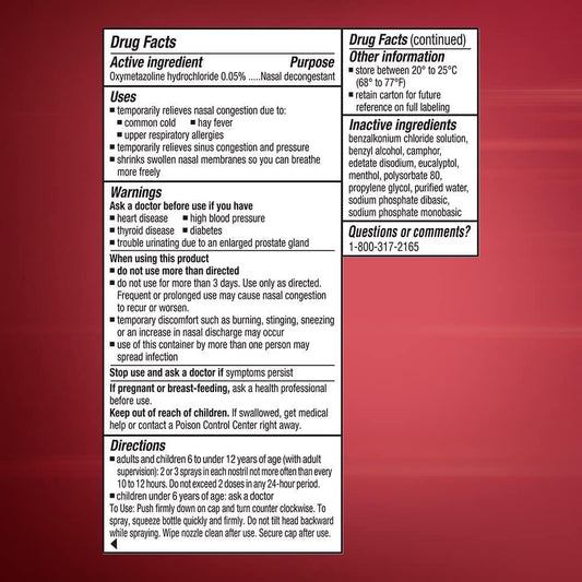 3 Pack Afrin Nasal Spray Severe Congestion 15mL - Fast Relief for Nasal Congestion, Sinus Pressure, and Cold Symptoms