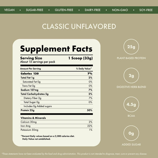 25g Organic Brown Rice & Pea Isolate Plant Protein - Vegan, Gluten/Dairy Free, Sugar Free - 1.1lb (13 Servings)