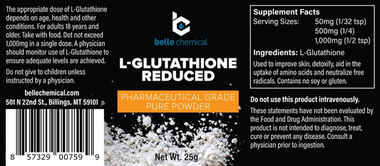 25 Grams of Pharmaceutical Grade Belle Chemical Pure L-Glutathione Reduced