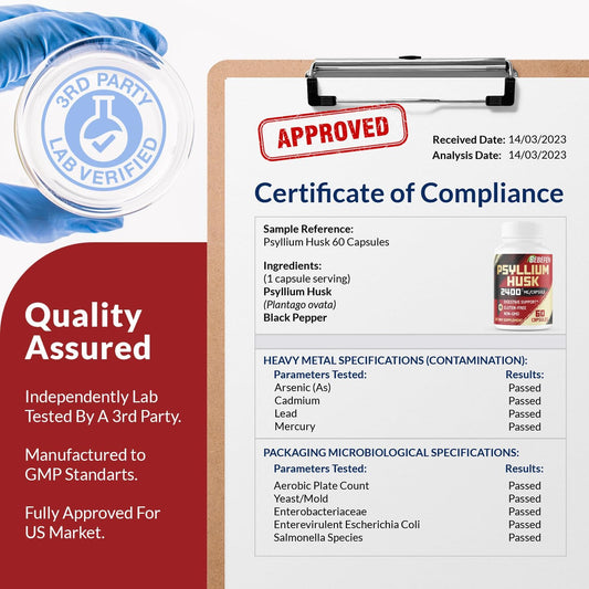 2400mg Psyllium Husk Capsules with Black Pepper - 60 Day Supply - Soluble Fiber for Digestive Health - Non-GMO & Gluten-Free Formula