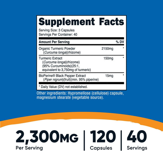 2300mg Turmeric Curcumin with BioPerine, 95% Curcuminoids, 120 Veggie Capsules - Gluten Free, Non-GMO, 40 Servings