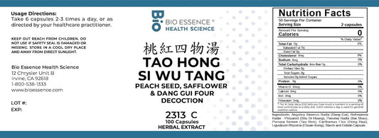 2313C Tao Hong Si Wu Decoction Capsules - Peach Seed, Safflower, Dang Gui - 100 Capsules (2 Bottles)