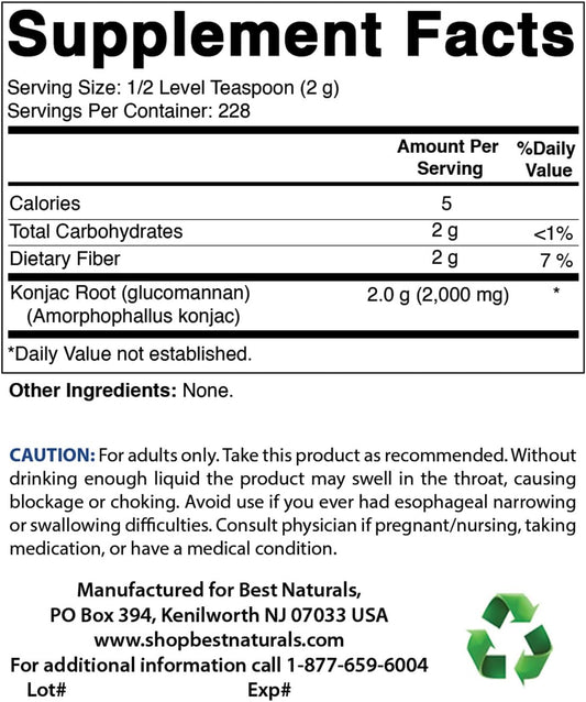 2 Pack Best Naturals Konjac Glucomannan Root Powder - 2000mg per Serving - Total 2lb - Appetite Suppressant and Weight Loss Support