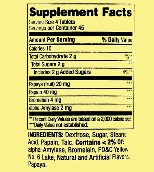 180 Count Fast Dissolve Chewable Papaya Enzyme Complex Tablets from Spring Valley