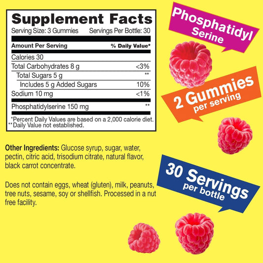 150mg Phosphatidylserine Gummies for Cognitive Support - Raspberry Flavor - Gluten Free - Non GMO - 60 Count