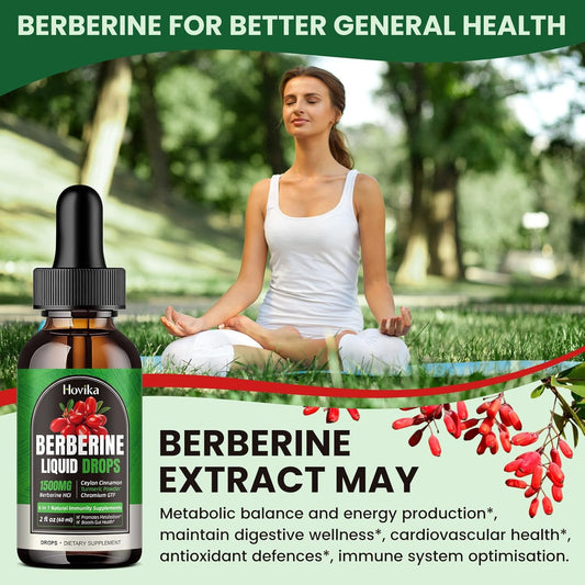 1500mg Berberine HCL Liquid Drops with Ceylon Cinnamon, Chromium, Turmeric, Niacinamide - Supports Metabolism, Immune System, Gut Health - 2 FL Oz Vegan Supplement