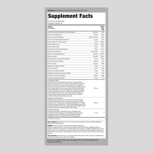 120 Caplets Piping Rock Fruits Veggies Supplement Probiotics Multi Vitamin Non-GMO Gluten Free