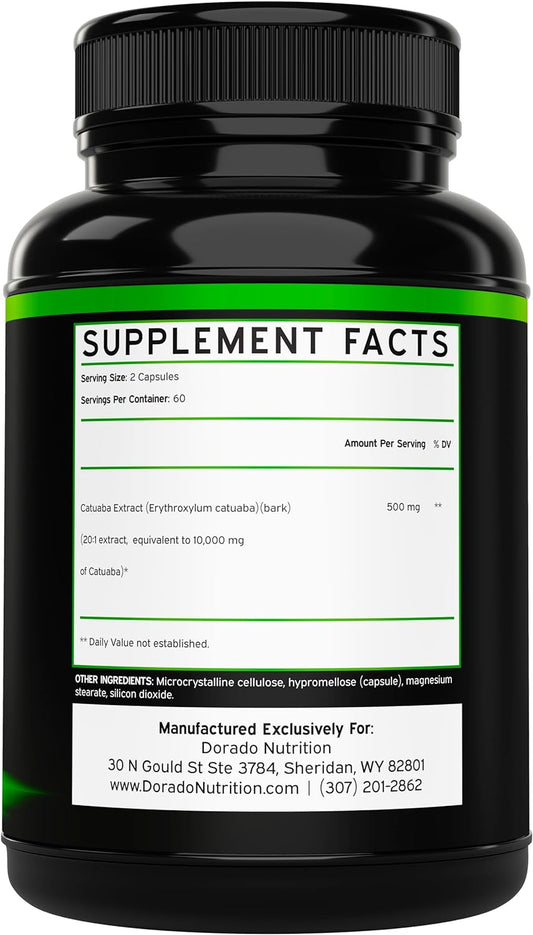 120 Capsules Catuaba Bark Extract Supplement for Drive & Stamina - Third Party Tested - Made in USA - Gluten Free, Non-GMO, Vegan - Men & Women Formula