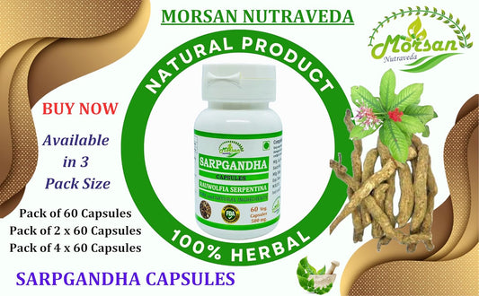 100% Herbal Morsan Nutraveda Rauwolfia Serpentina Extract Capsules | Highest Potency | Pack of 120 Veg Capsules | 1000 mg.
