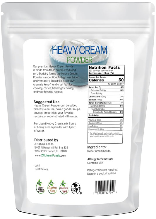 Nutrient-Dense Heavy Cream Powder - Delicious Powdered Cream with Long Shelf Life - Ideal for Coffee, Baking, & Keto-Friendly Recipes - Gluten-Free - 5 lbs
