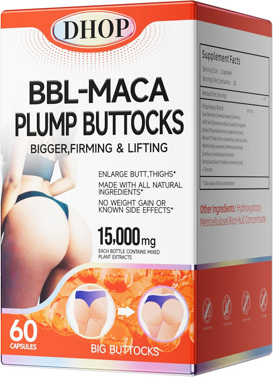 DHOP Butt Booster Pills with Buttocks Herbal Supplements - Plump HIPS Enhancement for a Firm and Seductive Big Booty - Includes Black Maca Root - 60 Tablets