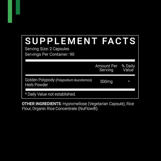 SYMNUTRITION Polypodium Leucotomos 500mg V-Capsules - 180 Count, Vegan & Gluten Free, Made in USA cGMP Facility