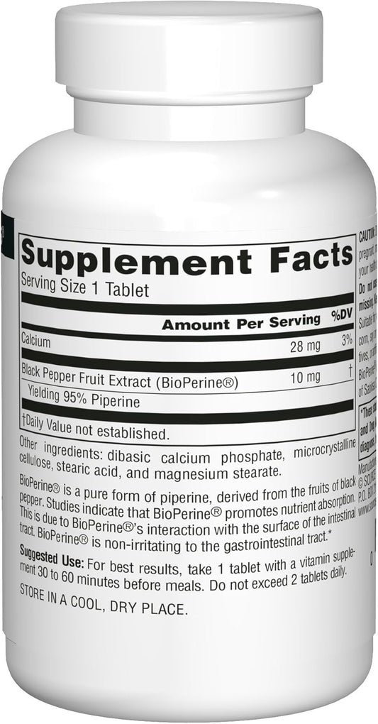 Pack of 360 Source Naturals BioPerineยฎ 10 mg Tablets for Enhanced Nutrient Absorption