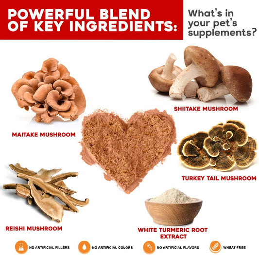VetSmart Formulas Immune Support Supplement for Pets - Mushroom Blend with White Turmeric Extract - 30-Day Supply