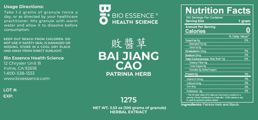 Organic Bio Essence Health Science Bai Jiang Cao Patrinia Herb (Raw) 100g - 1275 Formula