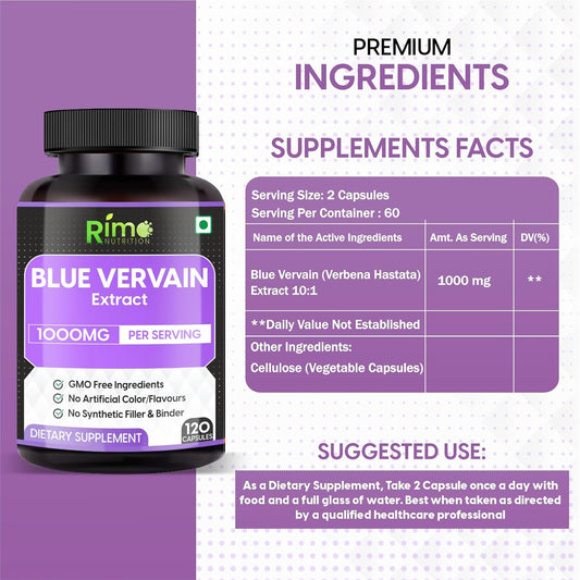 Blue Vervain Capsules - 1000mg Serving Size, 120 Capsules - Non-GMO, Gluten Free Herb Supplement by Rimo Nutrition