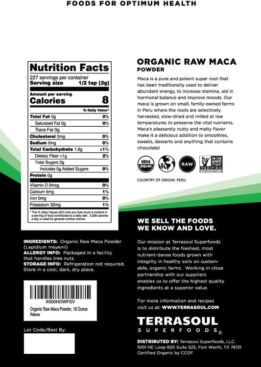 Terrasoul Superfoods Organic Raw Maca Powder - 1 Lb | Premium Quality for Stamina & Energy Boost