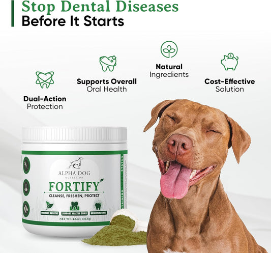 Natural Dental Powder for Dogs - Promotes Oral Health, Freshens Breath, and Removes Plaque - With Kelp, Probiotics, and Green Supplements for Clean Teeth and Healthy Gums