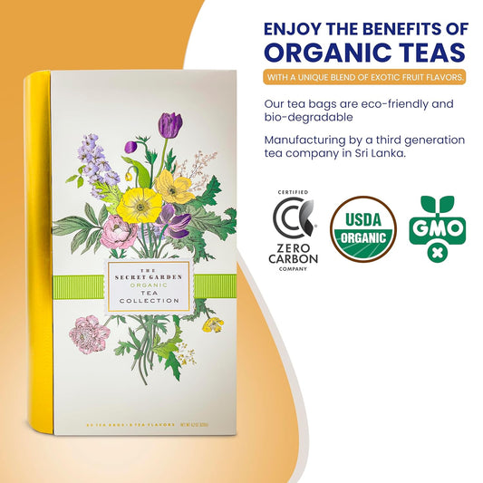 Exotic Fruit and Herbal Tea Bag Sampler Gift Set - 80 Pack in Designer Tin Book - Assorted Variety of Premium Organic Black and Green Teas - Individually Wrapped - 8 Flavors
