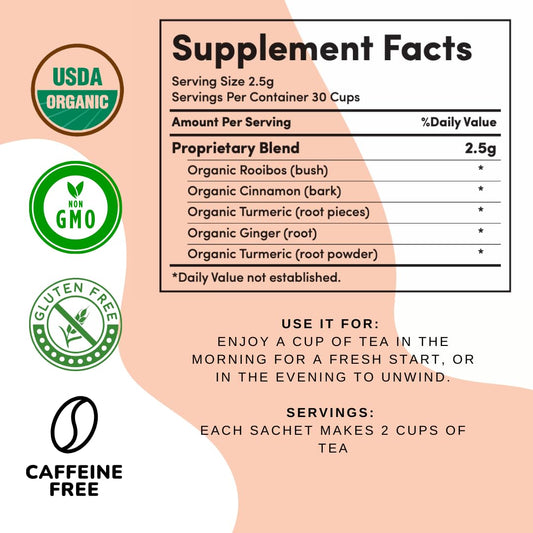 Organic Turmeric Ginger Tea - Autoimmune Protocol (AIP), Whole 30 & Paleo Friendly Golden Tonic Herbal Blend - Ayurvedic Rooibos Herbs - 100% Organic & Gluten-Free